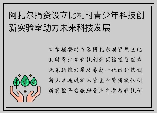 阿扎尔捐资设立比利时青少年科技创新实验室助力未来科技发展